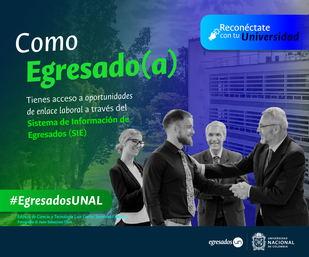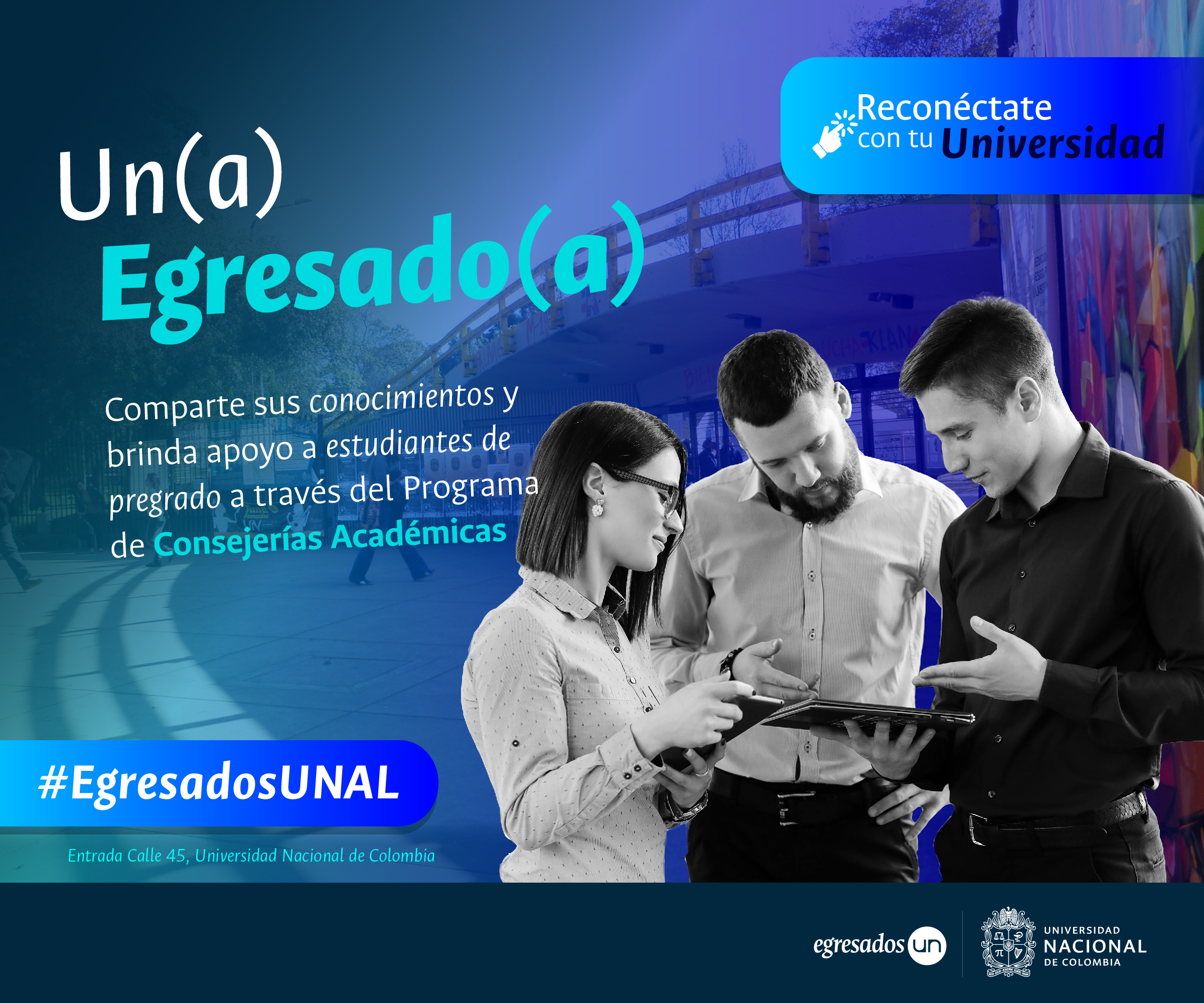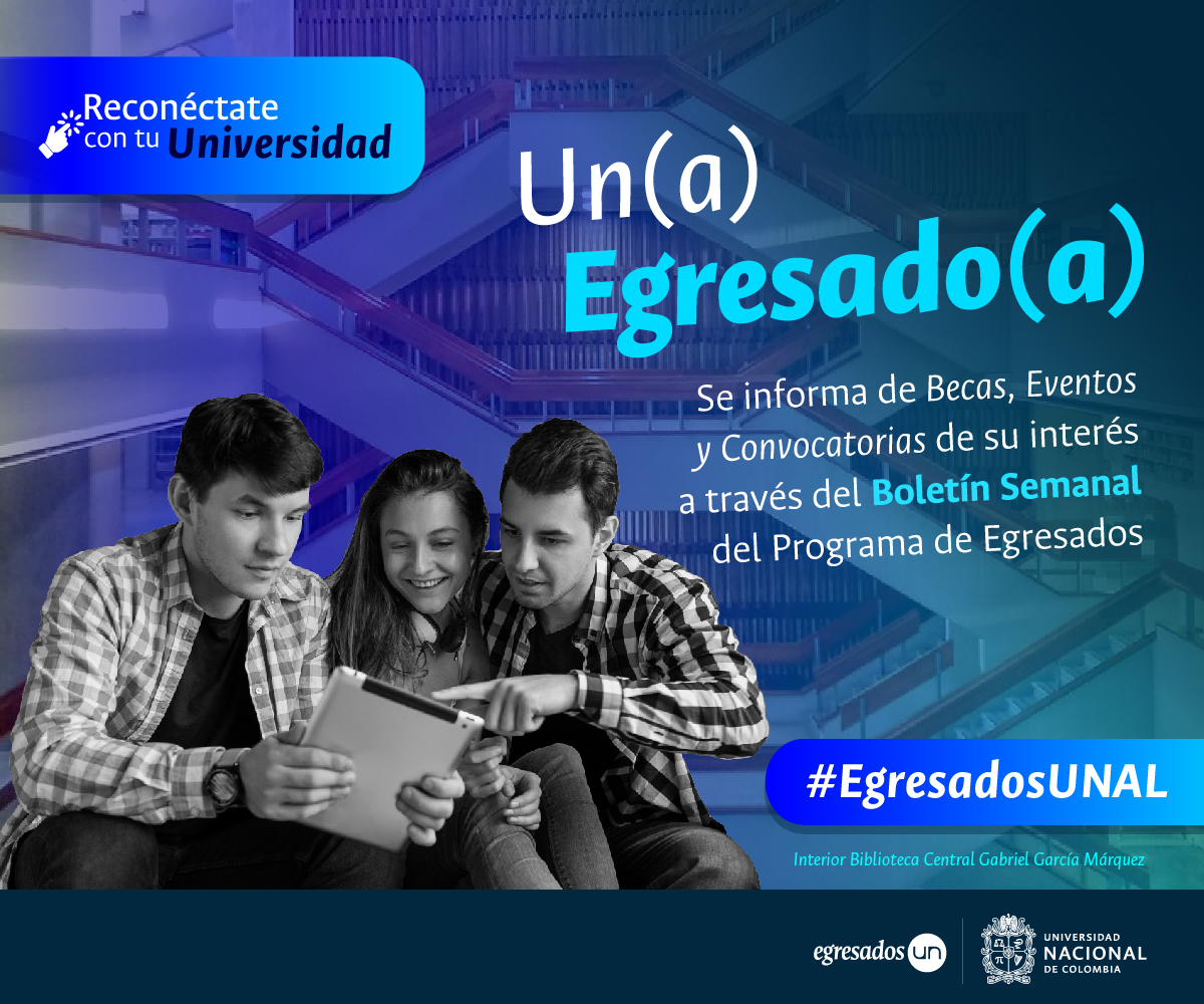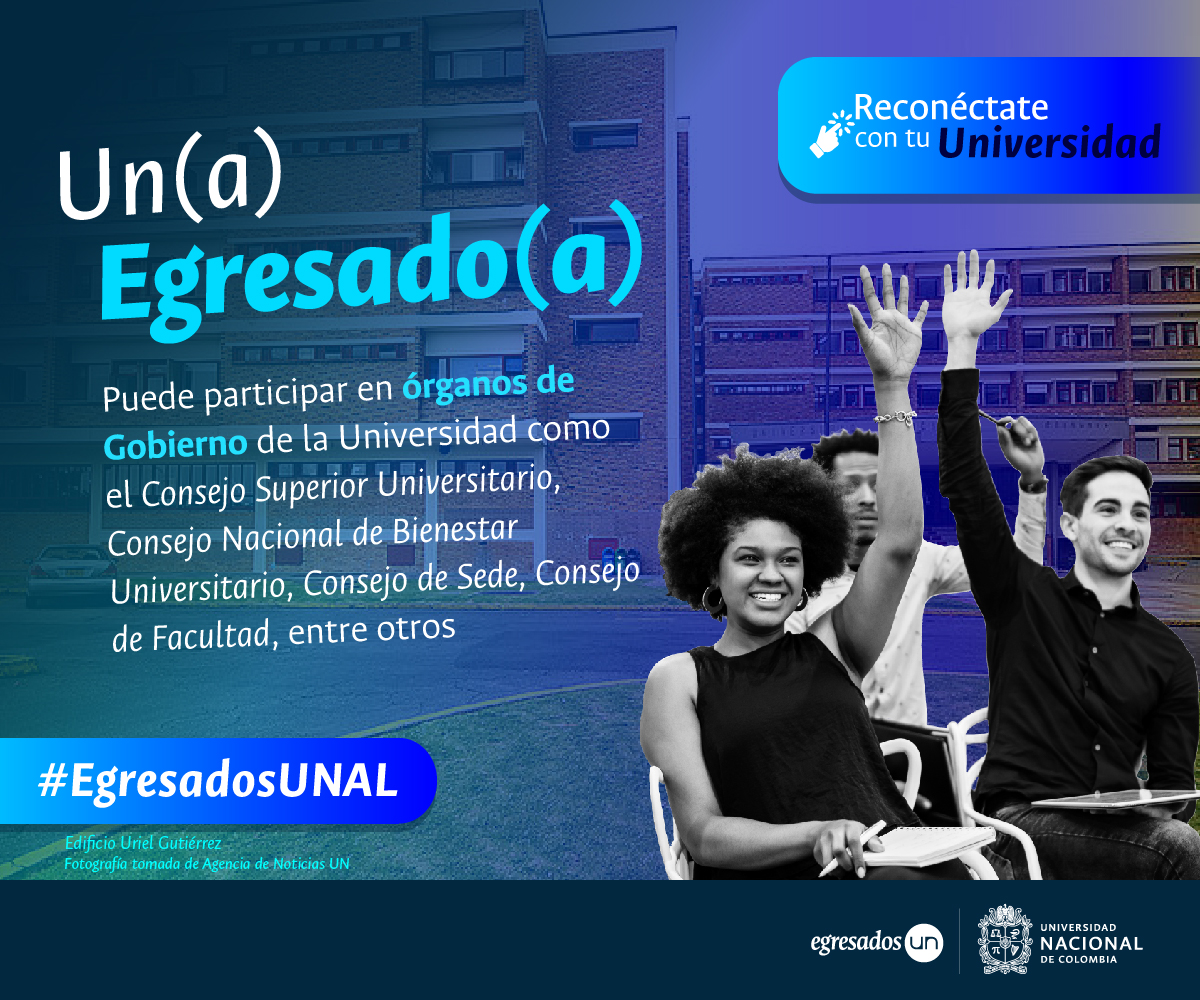 El Programa de Egresados de la Universidad Nacional de Colombia se constituye en una herramienta para el fortalecimiento de la comunidad universitaria y la generación de tejido social; es un "volver" de los graduados con la posibilidad de ser vinculados al proceso de fortalecimiento de la institución, es reconocer en ellos, en la realidad de su quehacer cotidiano: el impacto, la calidad y la pertinencia académico/social de nuestra universidad. El programa promueve la vinculación de los egresados de la Universidad en los campos académicos, culturales y sociales. De esta manera, se busca el desarrollo personal, profesional y empresarial de los Egresados, así como su aporte al mejoramiento de los procesos académicos.