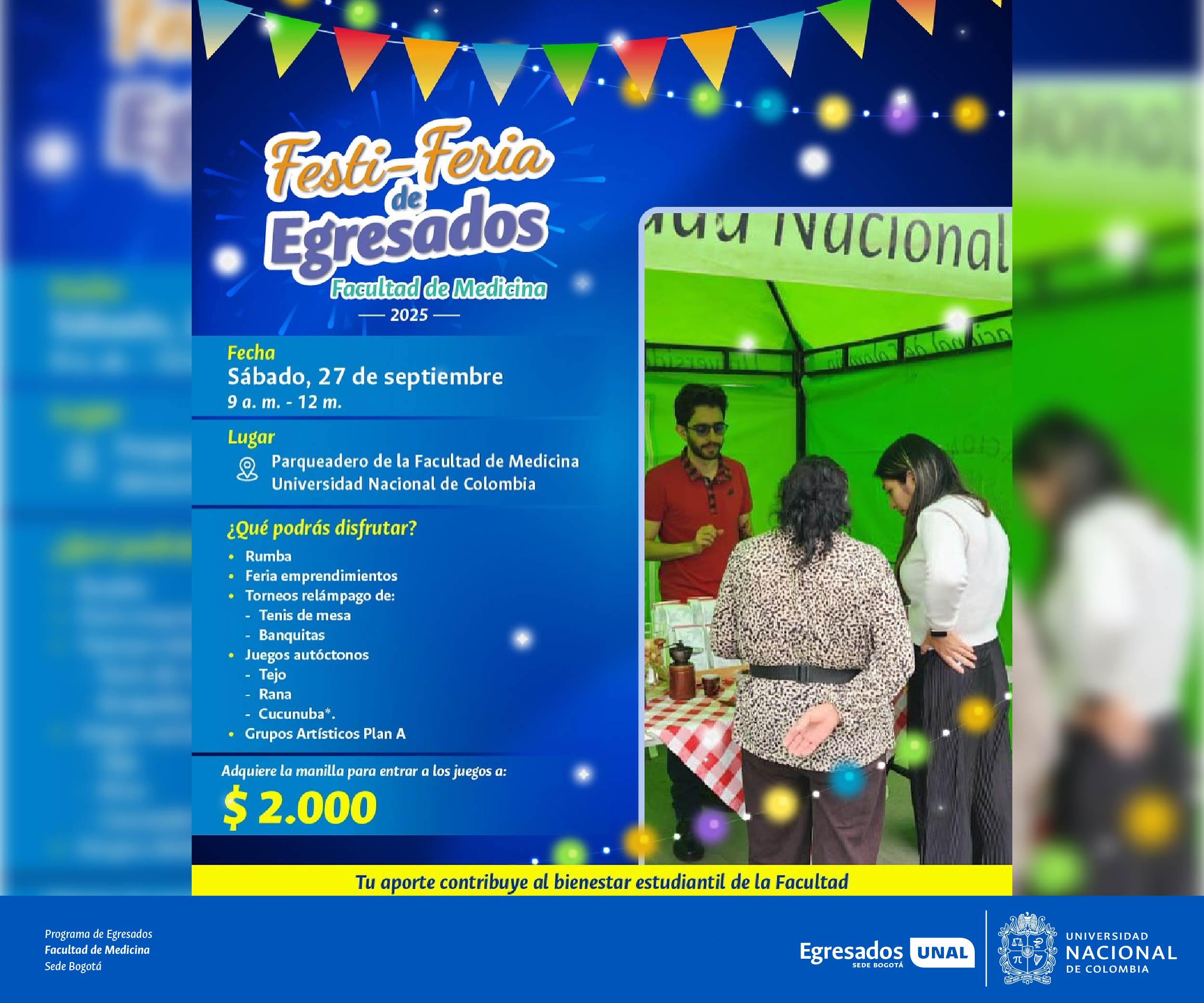La Festi-Feria de Egresados 2025 de la Facultad de Medicina será un espacio para reconectarnos, disfrutar y apoyar el bienestar estudiantil.