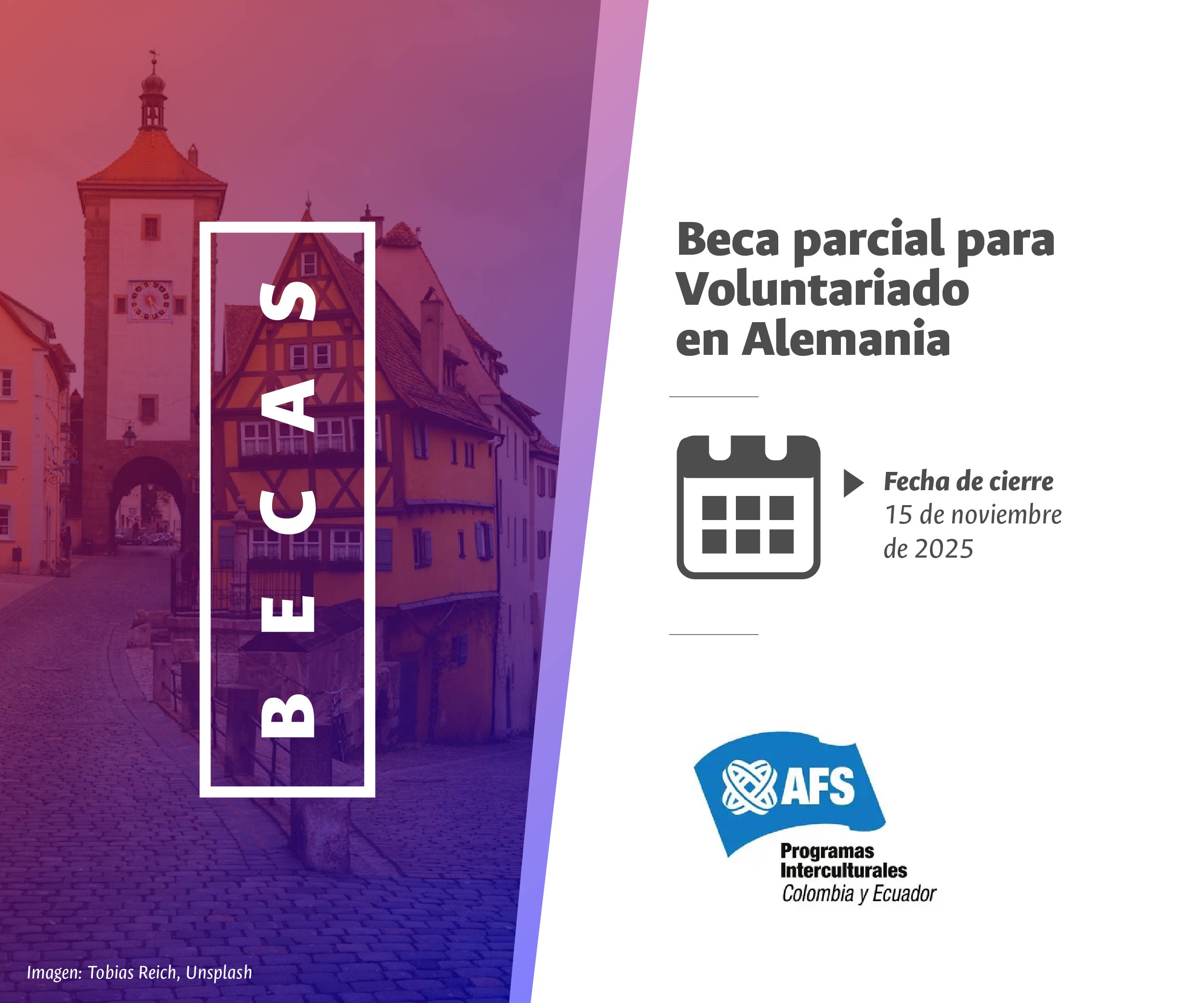 AFS Colombia y Ecuador, ofrece becas para hacer voluntariado en Alemania durante el 2026. Este es un programa organizado por AFS Alemania bajo el marco, apoyo y patrocinio del Bundesministerium für wirtschafliche Zusammenarbeit und Entwicklung (BMZ).