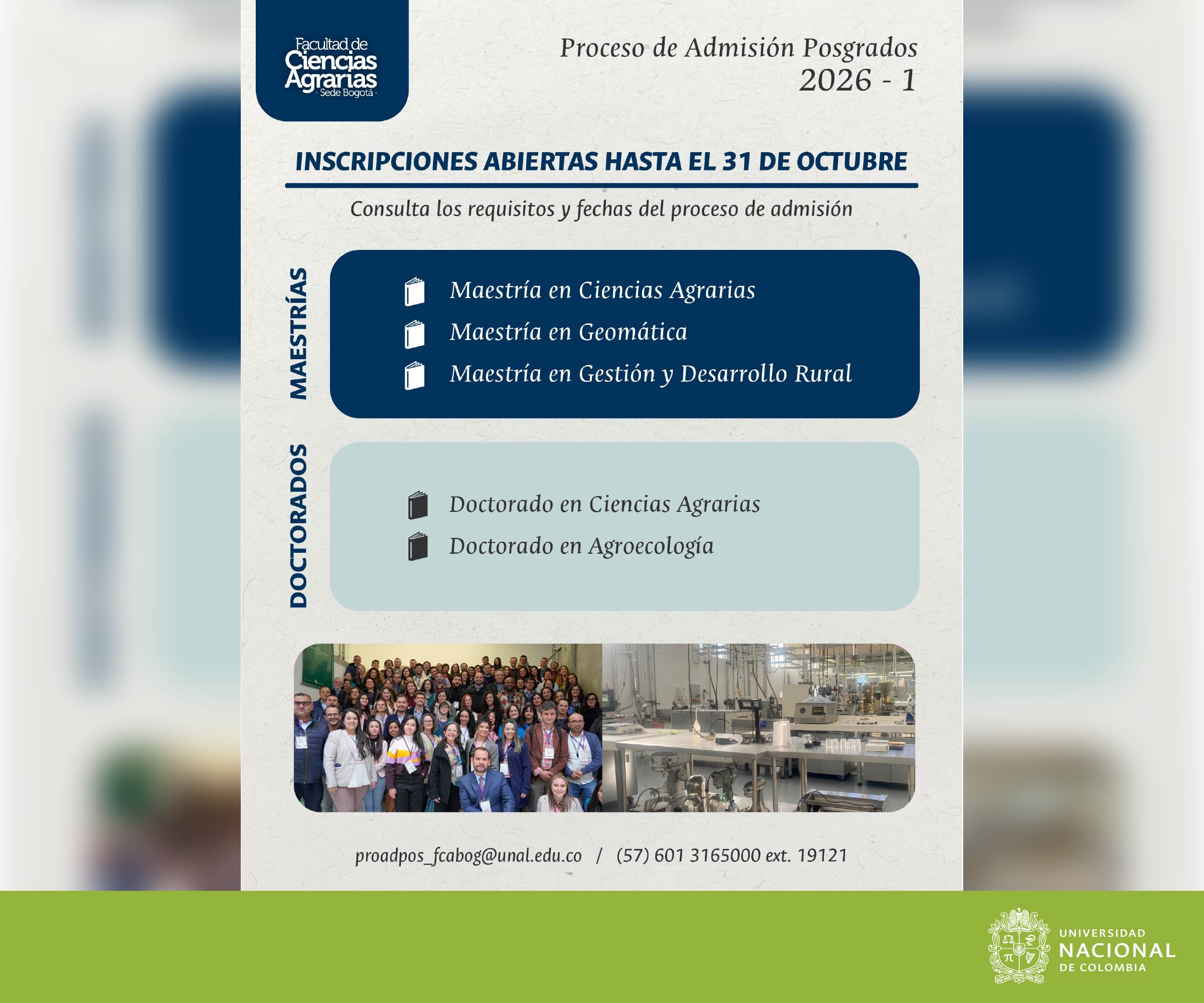 Participa en la convocatoria sobre el proceso de Admisión Posgrados Facultad de Ciencias Agrarias FCA 2026-1