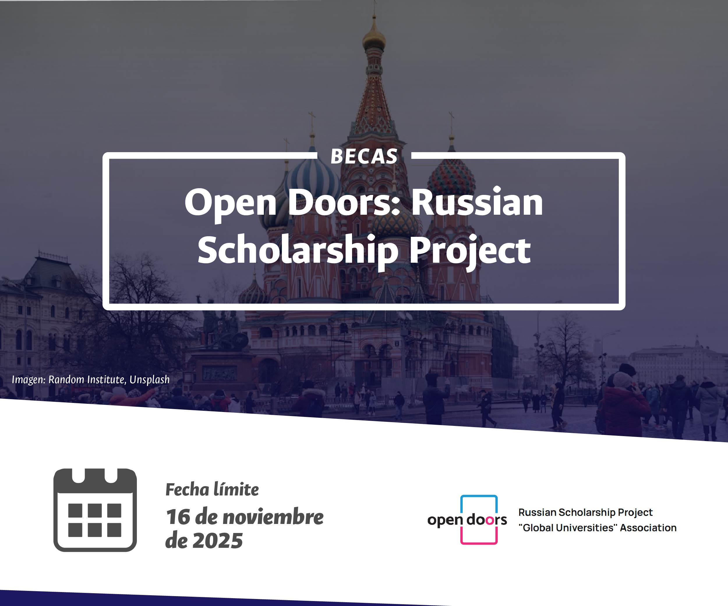 Open Doors es una competencia internacional que selecciona estudiantes de todo el mundo para acceder a becas completas en universidades rusas de excelencia. Los beneficiarios obtienen exención total de matrícula y apoyo en el proceso de admisión, visado y acompañamiento académico.
